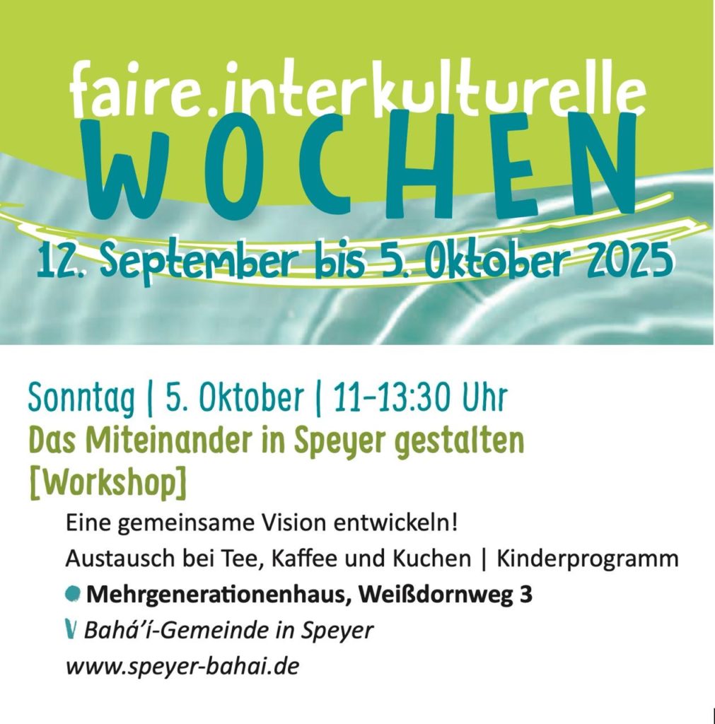 12. Raum der Begegnung am 05.10.2025 von 11:00 h- ca 13:30 h im Mehrgenerationenhaus, Weißdornweg 3, 67346 Speyer